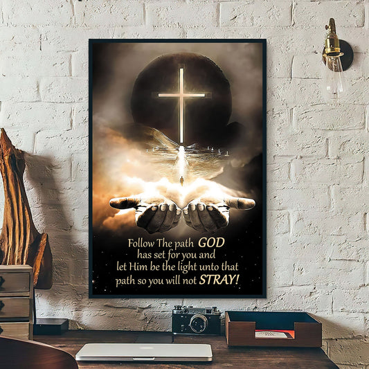 Follow The Path God Has Set For You Poster Wall Art Scripture Wall Print Distressed Typographic Jesus Poster Inspirational Positive Quotes