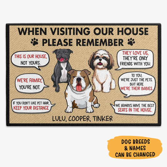 Visiting My House Please Remember, Personalized Doormat, Custom Gift For Dog Lovers