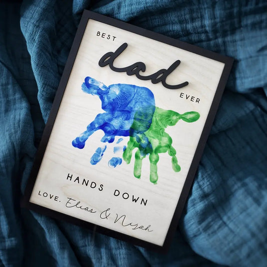 Best Dad Ever Personalized Wooden Sign with Handprints and Custom Message - Handcrafted Father's Day Gift