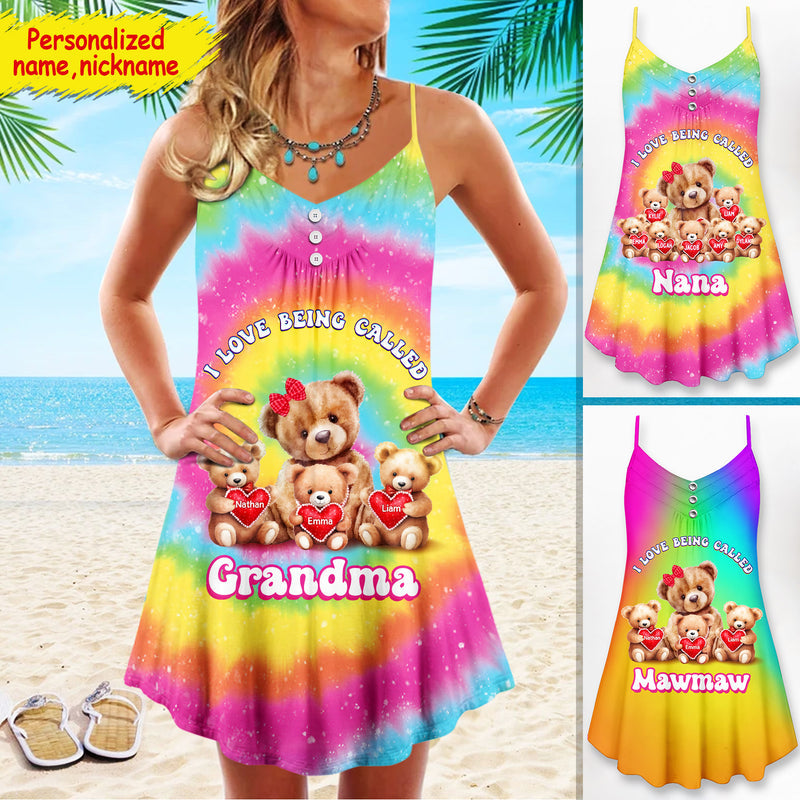Grandma/ Mama Bear I Love Being Called Grandma/ Mama Colorful Personalized Summer Dress