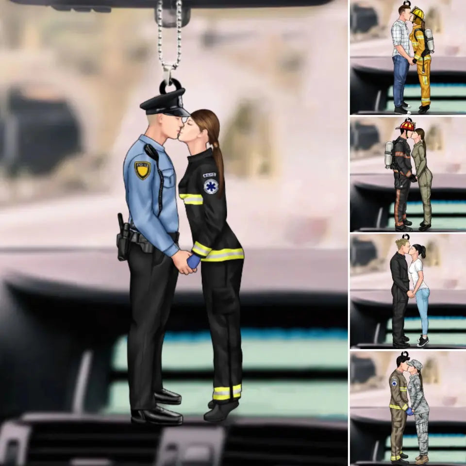 Personalized Car Acrylic Ornament, Couple Portrait, Firefighter, EMS, Nurse, Police Officer, Military, Gifts by Occupation