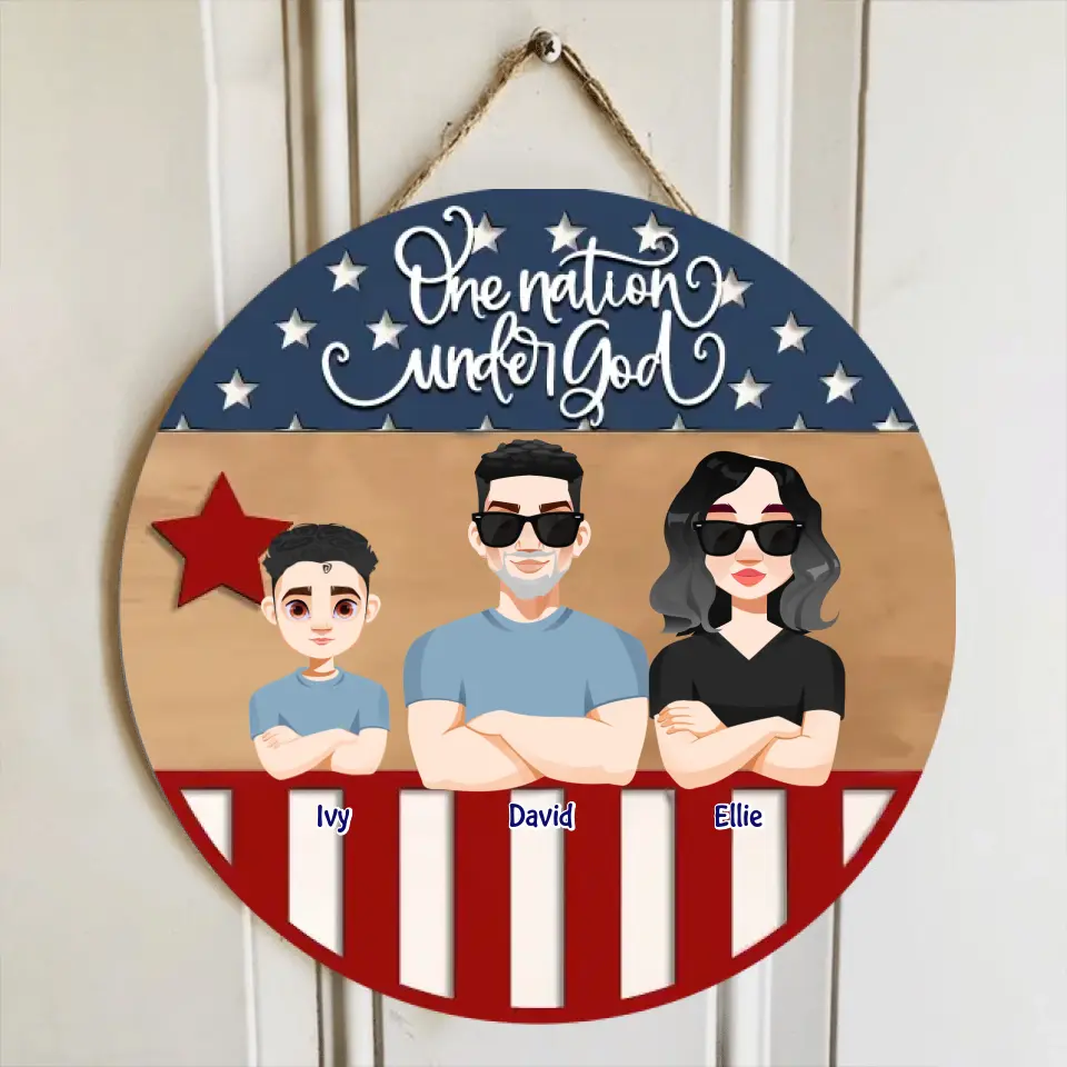 Available Product: Personalized Custom Door Sign - Independence Day, Gift For Family Members - One Nation Under God