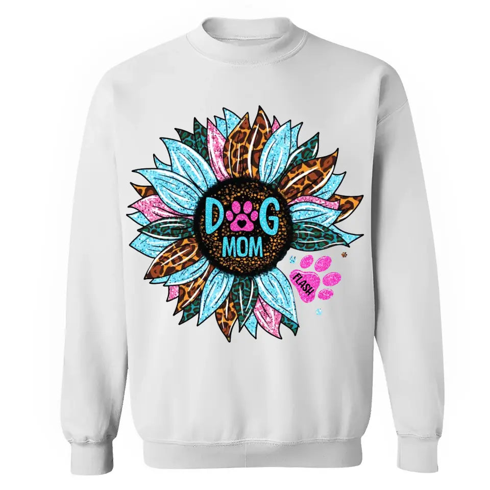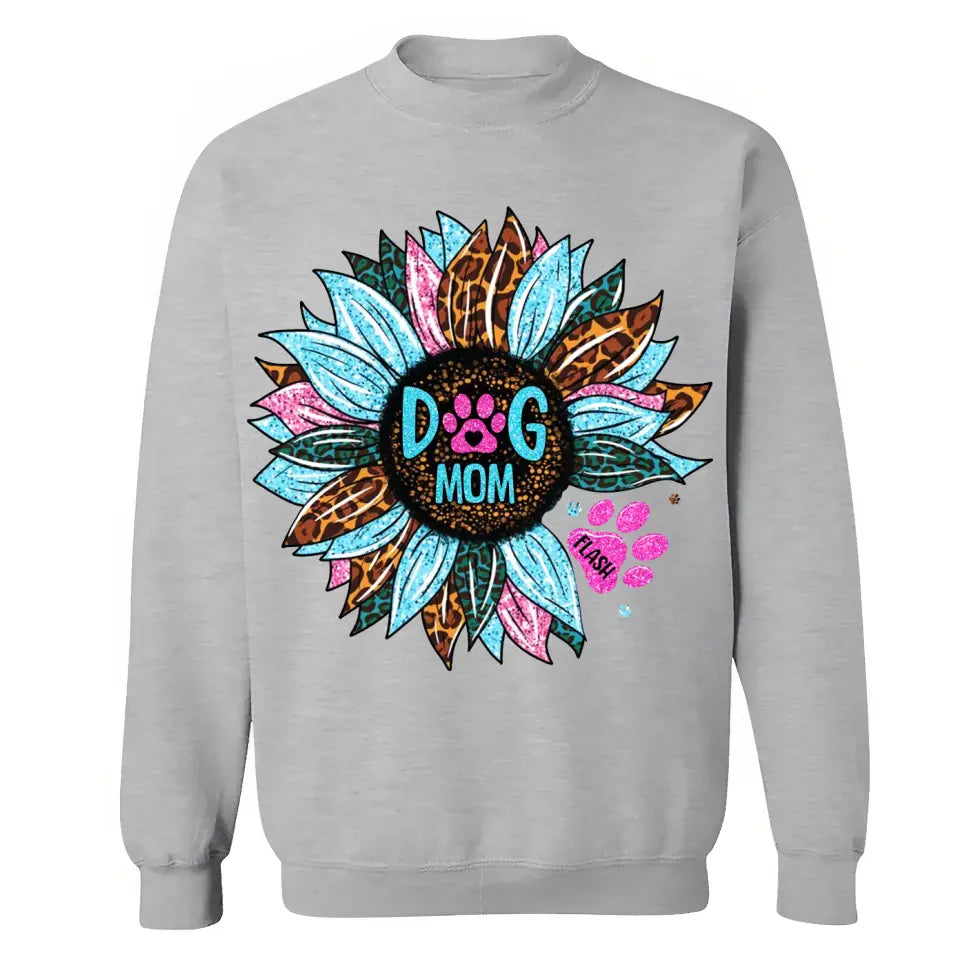 Personalized Sunflower & Dog Mom Tshirt Printed